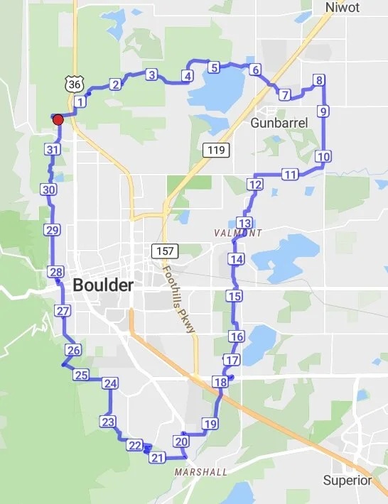 The Beauty of the Boulder 4 Corners route is that you see the whole of Boulder while staying within touching distance of trail heads and parking lots that allow crew and family members to provide aid and cheer you on along the way.